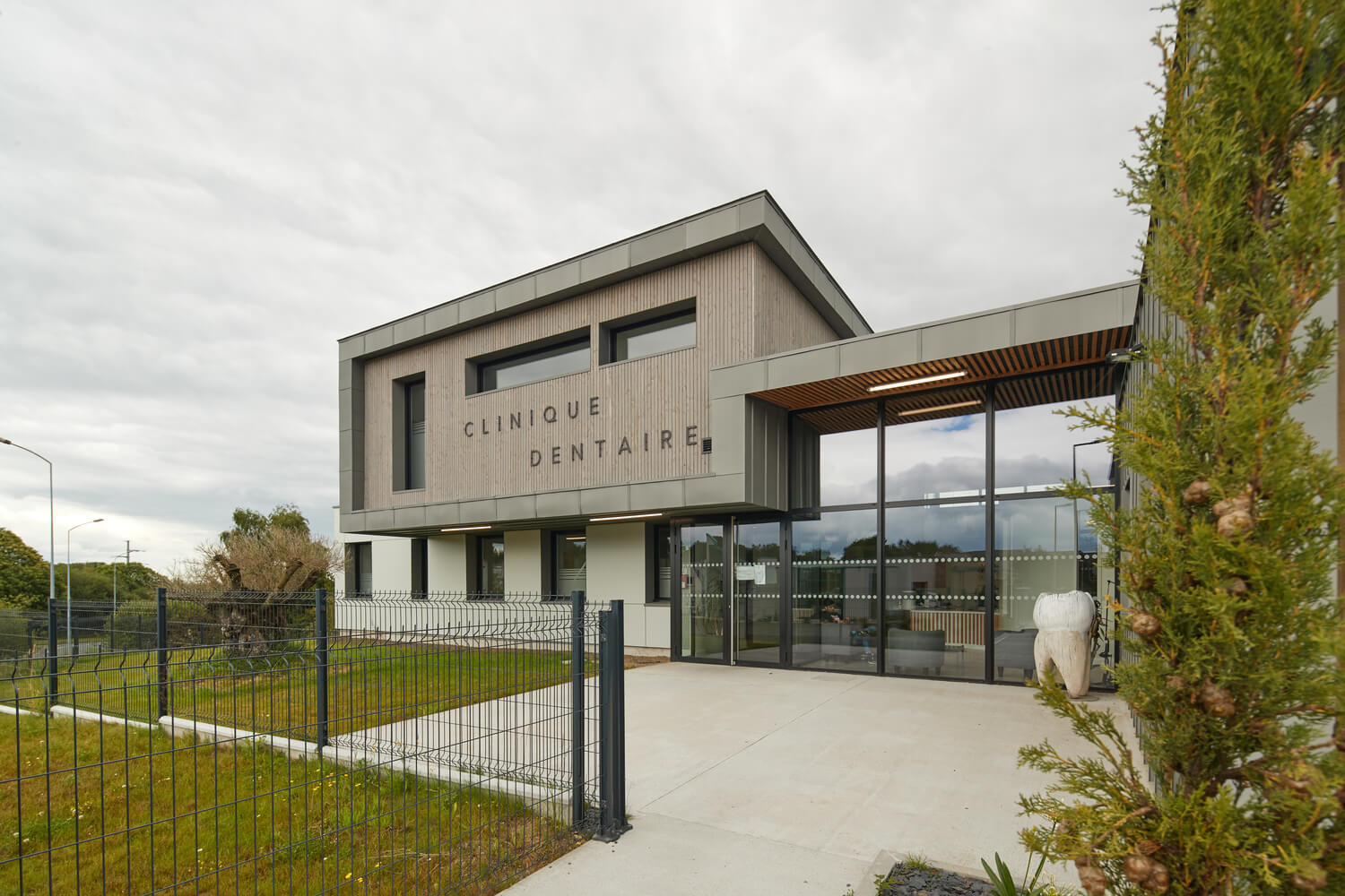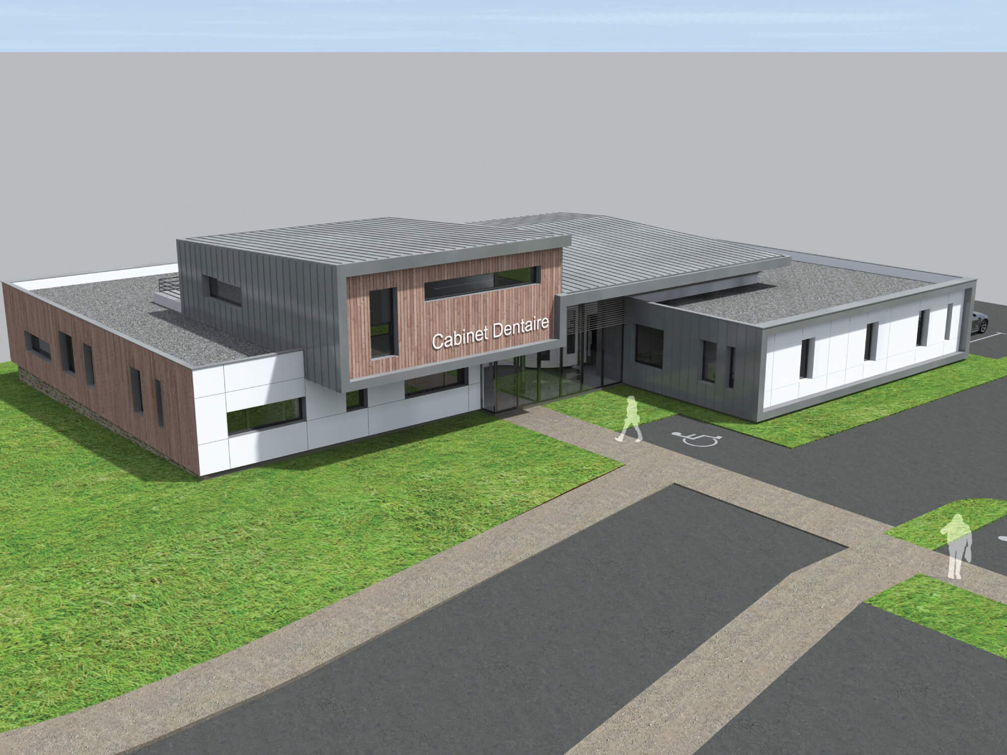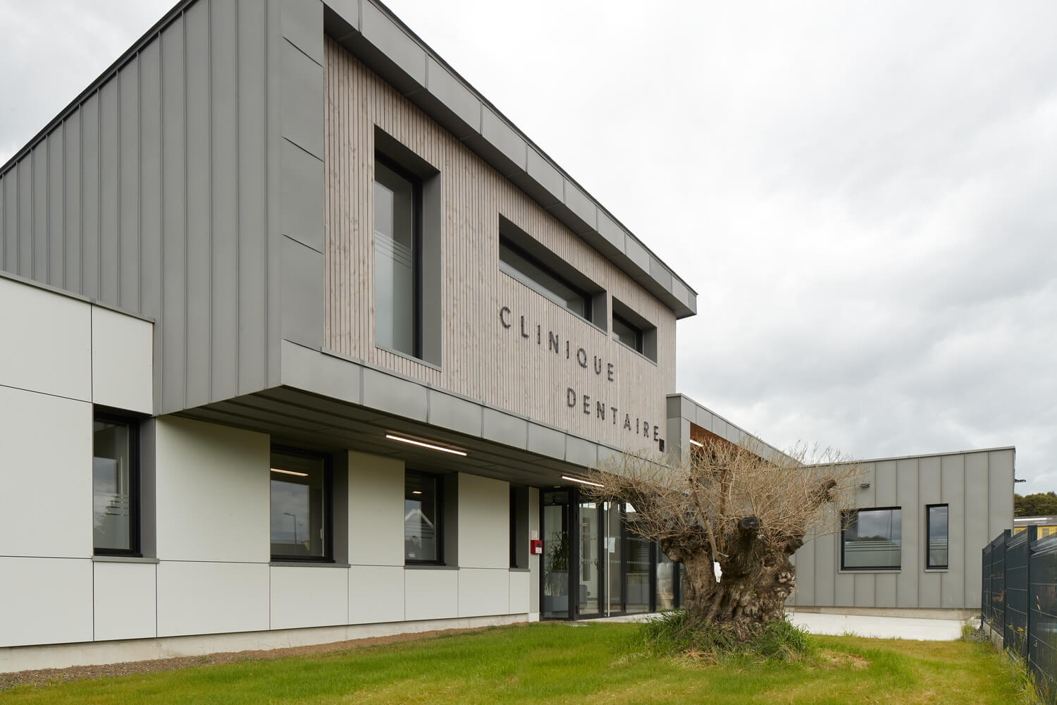 Bardage bois / panneaux Trespa / Zinc.