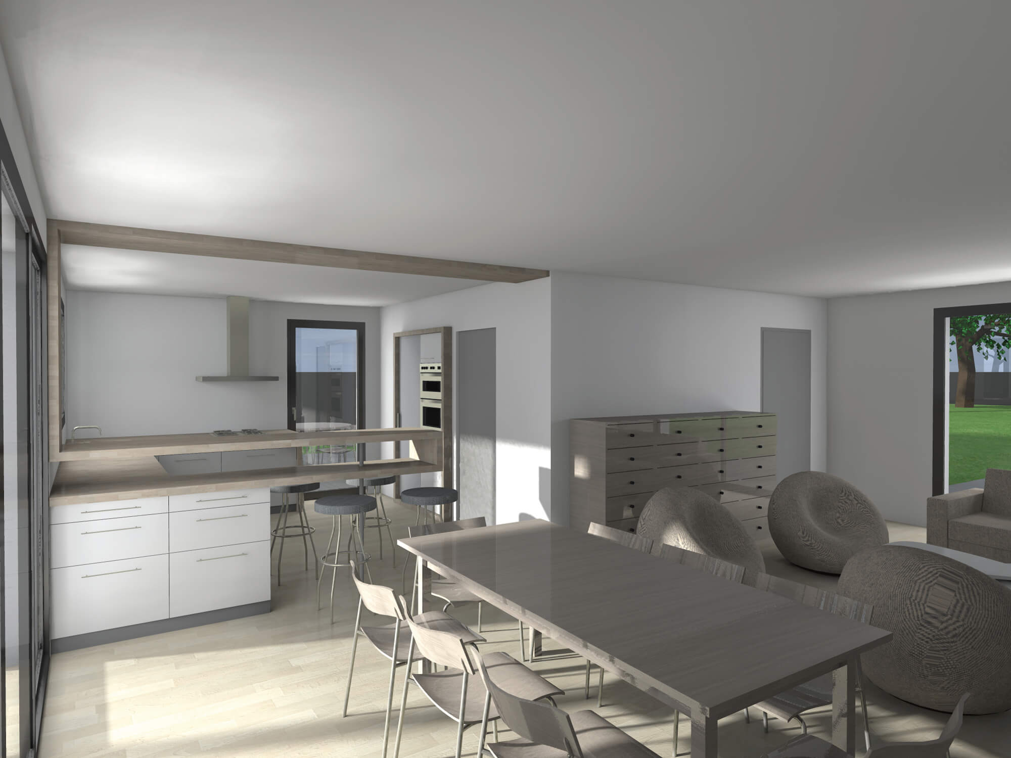 Les choix d’implantation permet d’orienter au sud tous les espaces intérieurs tout en permettant l’ouverture au Nord sur le terrain.