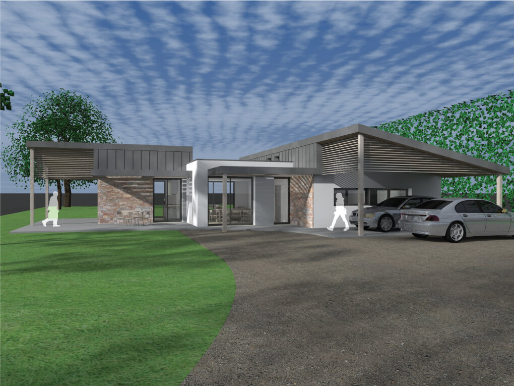 Surfaces Habitables : 119 m2 + abri voitures : 28 m2 + abri terrasse : 17m2