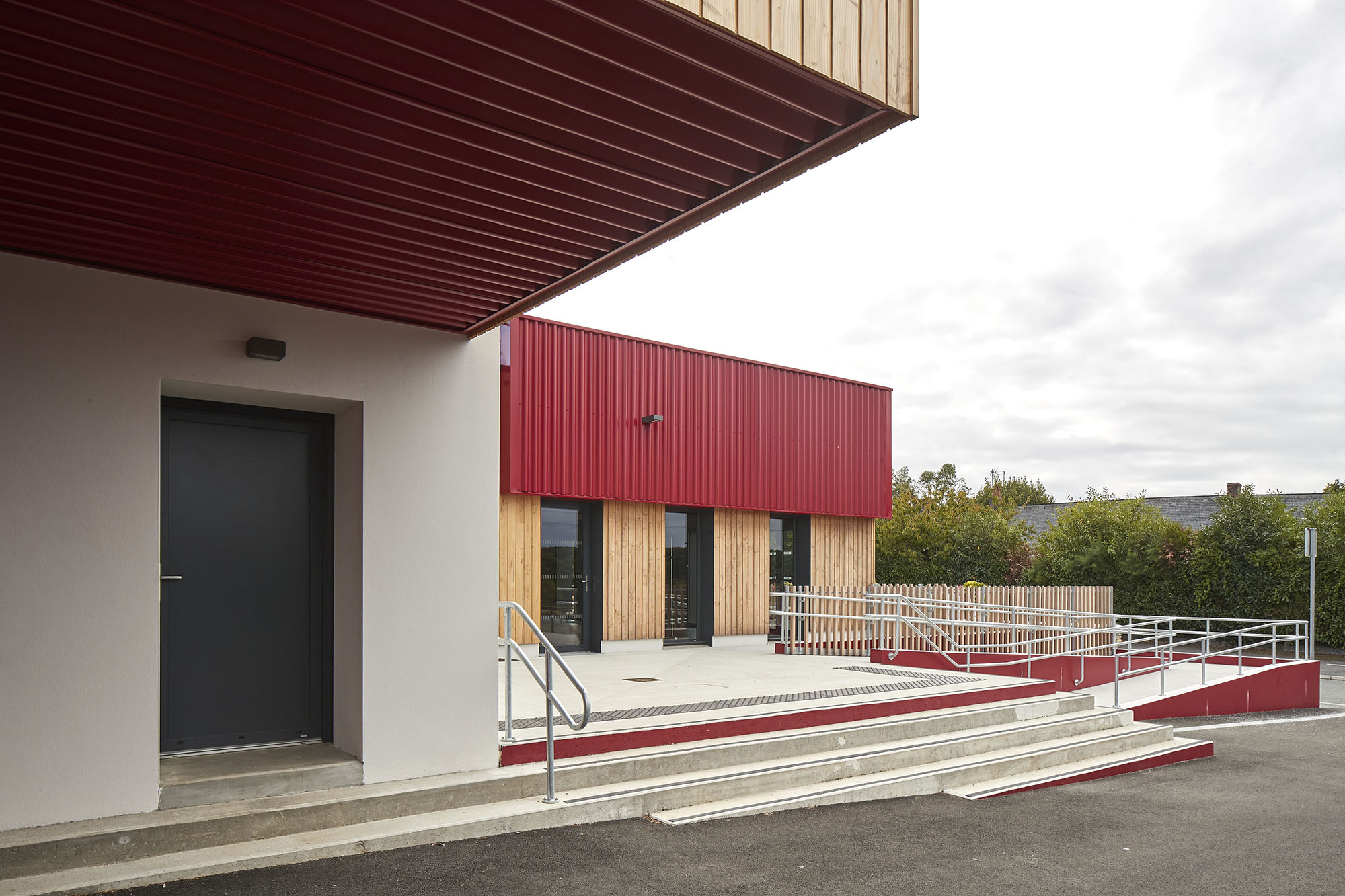 Bardage acier laqué et bois Douglas.